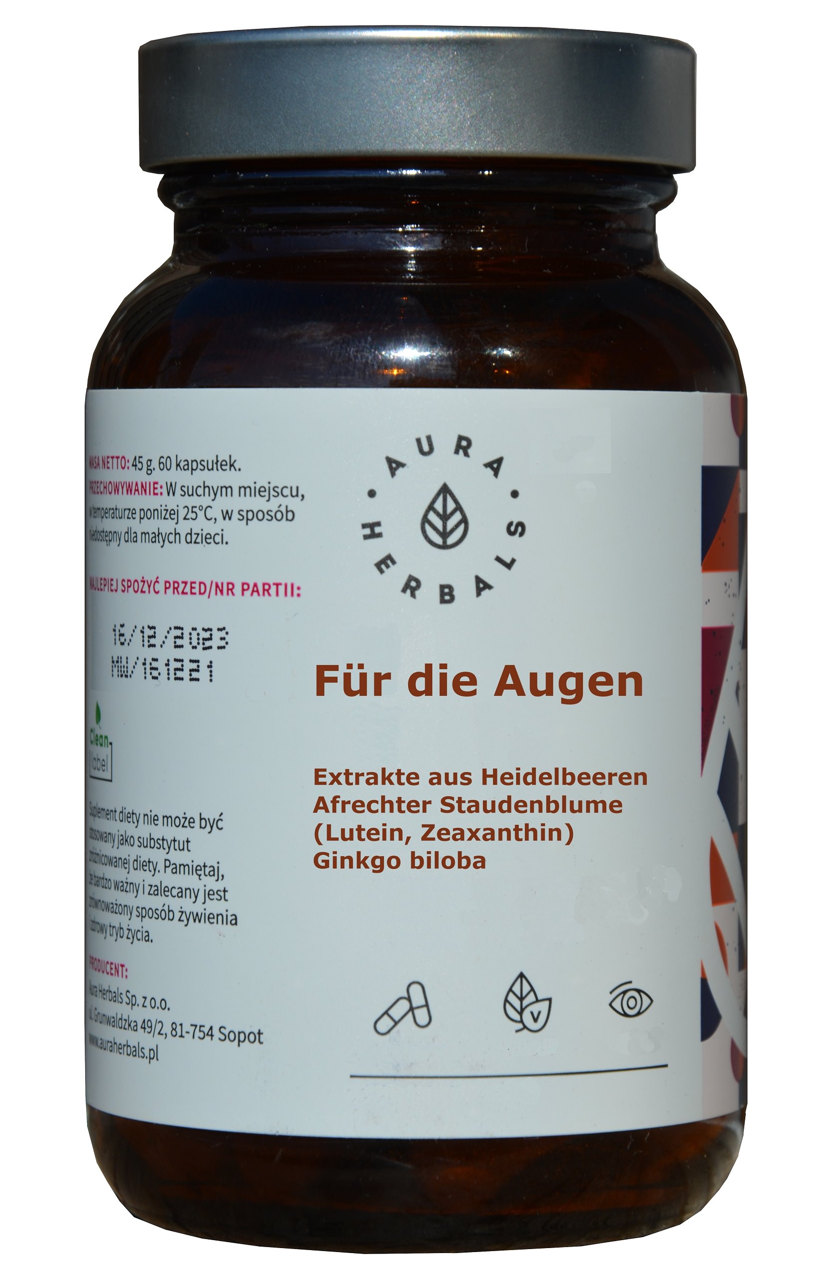 Zur Unterstützung der Augen, 60 Kapseln mit pflanzlichen Extrakten aus Heidelbeeren, Ginkgo, Lutein, Zeaxantin, Monatspackung
